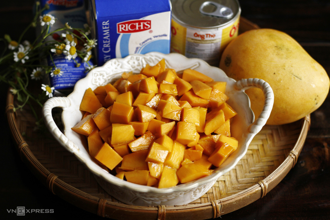 Mùa xoài đang vào vụ ngon và rẻ, tận dụng làm những ly kem xoài mát lạnh, mềm mịn, vị chua ngọt béo hài hòa nhanh chóng xua tan những oi bức của ngày hè.
