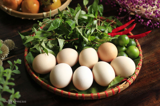 Yêu cầu thành phẩm: Trứng nướng không bị trào, không bị nứt vỏ mà còn giữ nguyên hình dáng. Khi bóc thì róc vỏ, trứng dẻo mịn, dai dai, vàng ươm. Món này ăn kèm rau răm chấm muối tiêu vắt thêm quất hoặc chanh rất ngon, nhất là vào tiết trời thu mát mẻ.