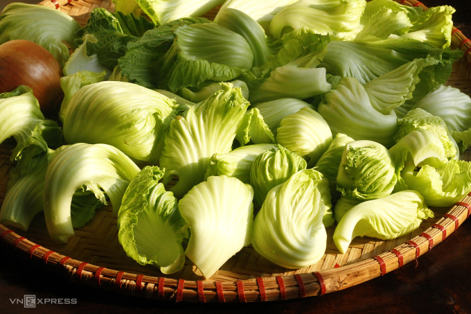 Dưa cải thường ngấm mặn nhiều hơn cà pháo vì thế nước muối dưa cải pha nhạt hơn muối cà.